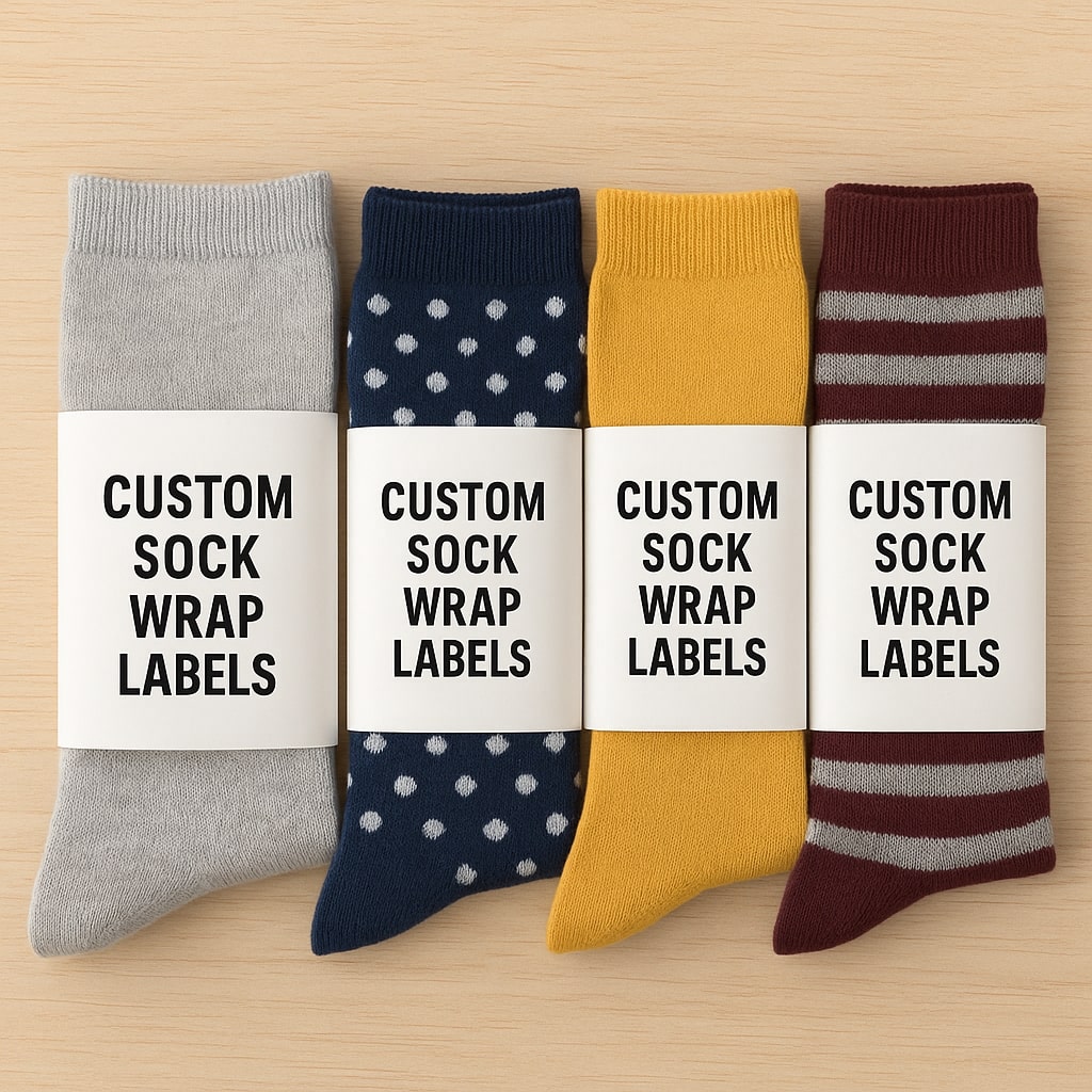 Sock wrappers are simple paper bands wrapped around socks, while sock packaging sleeves provide more space for branding, product details, and care instructions.