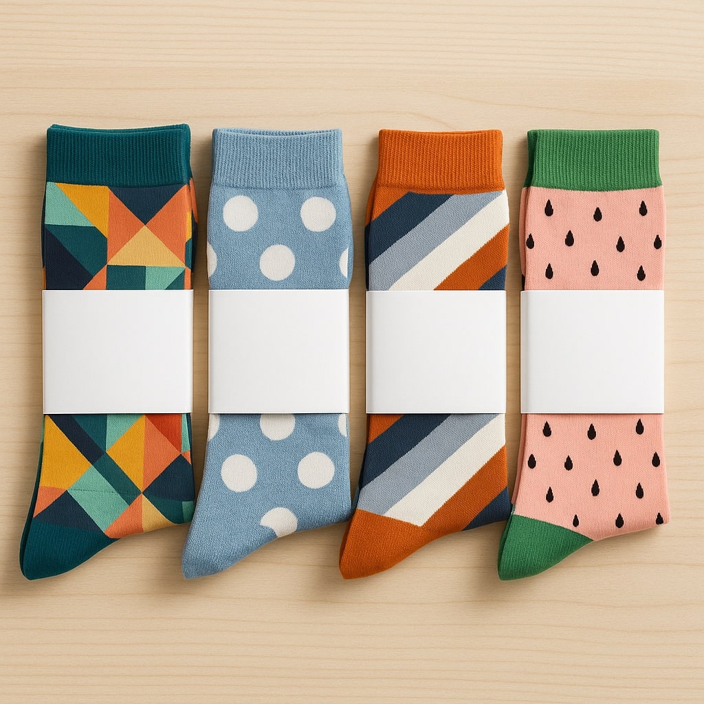 - Bold & Colorful Socks Packaging – Full sleeve graphics and loud colors for Bold brands.
